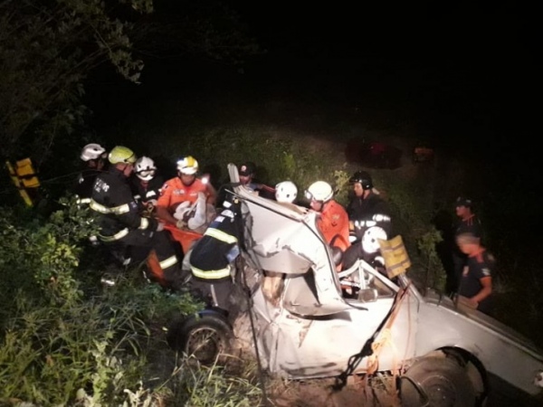 Dois dos ocupantes que seguiam no carro de passeio eram do sexo feminino e outro do sexo masculino, que já estava em óbito quando os socorristas chegaram. Devido ao impacto da colisão, as vítimas ficaram presas às ferragens e os bombeiros precisaram desencarcerar o carro para fazer o resgate delas. O paradeiro do condutor do caminhão, por sua vez, não foi informado.