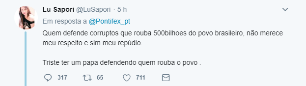 A declaração do pontífice gerou um duelo nas redes sociais, pois internautas associaram o vídeo aos supostos diálogos divulgados pelo site The Intercept Brasil entre Sergio Moro e Deltan Dallagnol, no processo que condenou Lula na Lava Jato, em que a imparcialidade do ex-juiz é questionada. A associação, contudo, é indevida. Em janeiro, muito antes das reportagens do Intercept, o Vaticano havia divulgado o calendário anual de intenções de orações. E julho havia sido dedicado às orações para que os juízes ajam com integridade na administração da justiça.