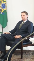Eu estou com 64 anos. Já estou com o prazo de validade vencido. Eu quero deixar algo especial para a minha filha, que não seja bens materiais apenas. No final de 2014, depois da reeleição da Dilma Rousseff (PT), eu olhei para mim mesmo e falei: eu estou sendo demais dentro do parlamento, eu tenho que buscar fazer alguma coisa para mudar o Brasil. Como? Não vai ter fundo partidário. Vamos ter a imprensa quase toda batendo na gente o tempo todo. Resolvi entrar nessa onda sabendo o que ia encontrar na cadeira presidencial. Alguns pensam que o presidente é o super-homem. Pode até ser. Mas aquela cadeira é de kriptonita. A gente senta ali e os problemas vem pela frente. E eu tenho um firme propósito de realmente entregar o Brasil em 2023 ou 2027 em melhores condições do que encontrei agora em 2019. Esse é o meu sentimento. Esse é o meu foco. Em relação a bens materiais, não vou mudar o meu “rolex” aqui (o presidente mostra o relógio digital que usa há tempos). Vivo muito bem com o que eu tenho, com o que eu ganho. Tenho sim uma aposentadoria no Exército. ‘Se aposentou com 33 de idade”. Verdade! Por isso estamos aqui para mudar a legislação para que não aconteça isso daí. Não foi uma aposentadoria. Quando eu fui diplomado vereador em 1988, a Constituição dizia que eu passava para a reserva remunerada proporcional ao tempo de serviço. Não tenho mais nenhuma aposentadoria, se bem que eu posso requerer a minha de parlamentar, mas não pretendo requerê-la. Vou deixar bem claro. Meu objetivo é procurar servir a pátria da melhor maneira possível e enquanto Deus me der forças, já me deu uma vida no ano passado. Sou mineiro igual a você (risos), lá de Juiz de Fora. Então, a gente vai continuar nesse propósito. Sinto-me bem. Não é fácil você… o aparelhamento não é apenas de pessoas, mas de leis. Eu quero transformar a baia de Angra uma Cancum, mas o decreto que demarcou só pode ser revogado por lei e não por decreto. Assim é a legislação ambiental e esse problema você encontra em toda a administração brasileira. Você quer mudar alguém, por exemplo, que está em um órgão, cargo público importante, tem mandado de dois, quatro cinco anos, você não pode mudar. Mas a gente vai buscar, o tempo vai tirando essas pessoas do nosso caminho e a gente vai buscando ocupar com pessoas que tenham o coração verde e amarelo igual ao nosso para cumprir aquela missão de modo que todo Brasil possa ser beneficiado e não um pequeno grupo, né? Geralmente composto de pessoas com a mesma ideologia.