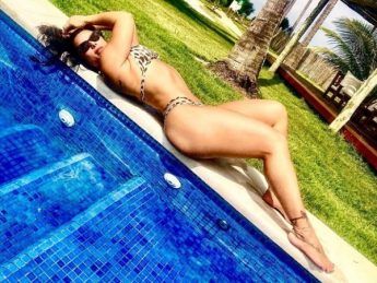 Viviane Araújo fugiu do Rio, onde mora, atrás do calor. Nesta segunda-feira (26), a atriz postou uma foto se bronzeando na Praia do Patacho, em Alagoas. “Dia de relax nesse paraíso que é a Pousada Reserva do Patacho. Eu mereço!!!! Uga! Uga”, escreveu ela na legenda da imagem em que aparece de biquíni à beira da piscina.