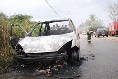 O Corpo de Bombeiros foi acionado para conter as chamas. Segundo informações da corporação, o condutor abasteceu o carro, e cerca de 500 metros depois percebeu um vazamento no motor. Em seguida, o fogo começou.