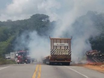Carretas carregadas com vinhaça incendeiam após colisão na BR-101