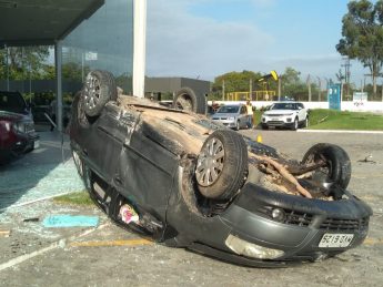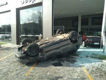 Carro capota, invade loja de veículos e deixa feridos no Tabuleiro, em Maceió