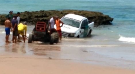 Carro do IMA atola em praia de Garça Torta durante fiscalização