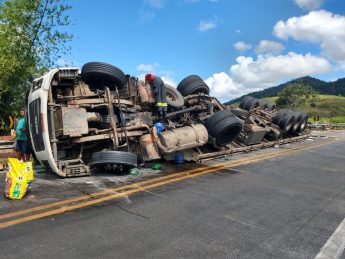 Um caminhão carregado de refrigerantes tombou na BR-101, próximo ao município de Joaquim Gomes. Com o acidente uma das vias da rodovia ficou parcialmente interditada. O motorista não ficou ferido.