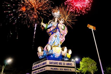 Emoção e fé. Foi com estes sentimentos que centenas de devotos e admiradores de Nossa Senhora do Amparo, de várias partes do estado, acompanharam a inauguração da imagem do Santuário neste sábado (12), na Serra do Goiti, em homenagem à padroeira de Palmeira dos Índios. O evento foi cercado de uma programação especial, que envolveu apresentação da Orquestra Municipal Graciliano Ramos e da cantora Fernanda Ferreira, relato histórico da cidade apresentado pelo historiador Cosme Rogério, corais e grupos da igreja católica, bênção apostólica proferida pelo bispo Dom Manoel Filho, acender da nova iluminação do local e queima de fogos.