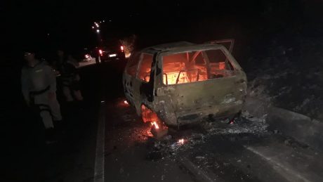 Um veículo Fiat Uno foi encontrado em chamas às margens da Lagoa do Félix, zona rural de Igaci.