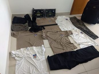 Camisetas com identificação em nome de outras pessoas, calças, um par de botas, um cassetete e bolsas da PM foram apreendidos na casa de Wagner, que não é policial. Na casa de Gilberto, foram apreendidos cartuchos de munição ponto 40.