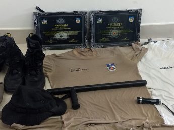 Camisetas com identificação em nome de outras pessoas, calças, um par de botas, um cassetete e bolsas da PM foram apreendidos na casa de Wagner, que não é policial. Na casa de Gilberto, foram apreendidos cartuchos de munição ponto 40.