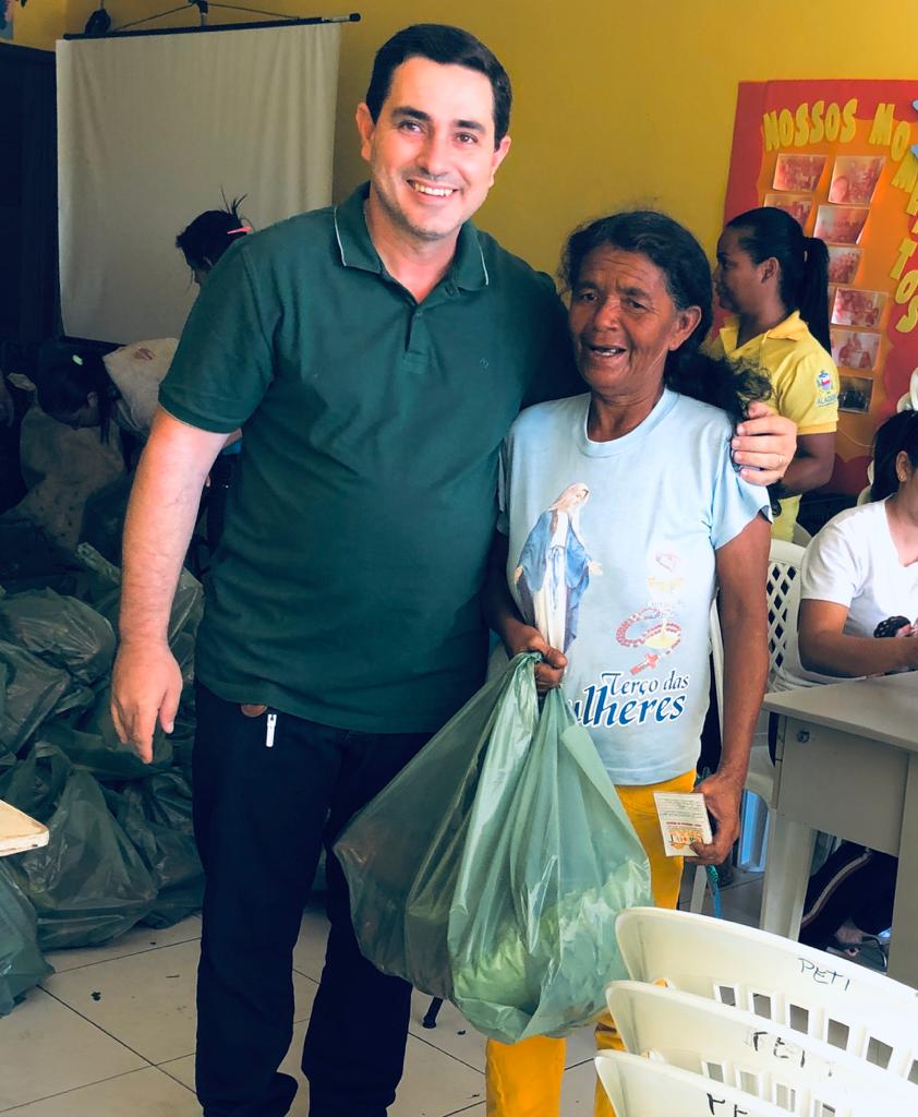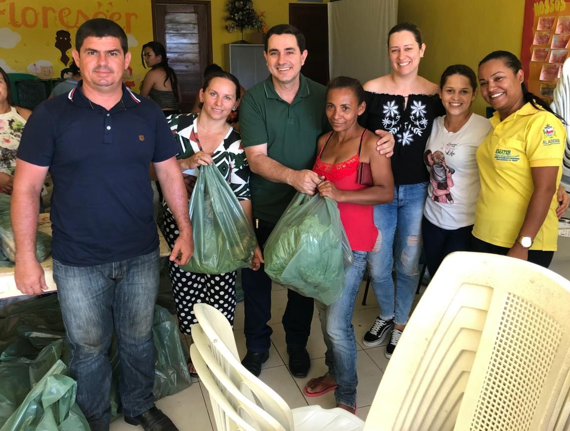 No local, foram entregues batata doce, macaxeira, banana, alface, couve, bolos de milho e cebolinha verde.