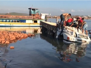 Segundo moradores, o caminhão trafegava em alta velocidade, quando perdeu o controle do veículo e tombou, chegando a colidir com barcos que estavam atracados no local e, em seguida, submergiu parcialmente no rio.