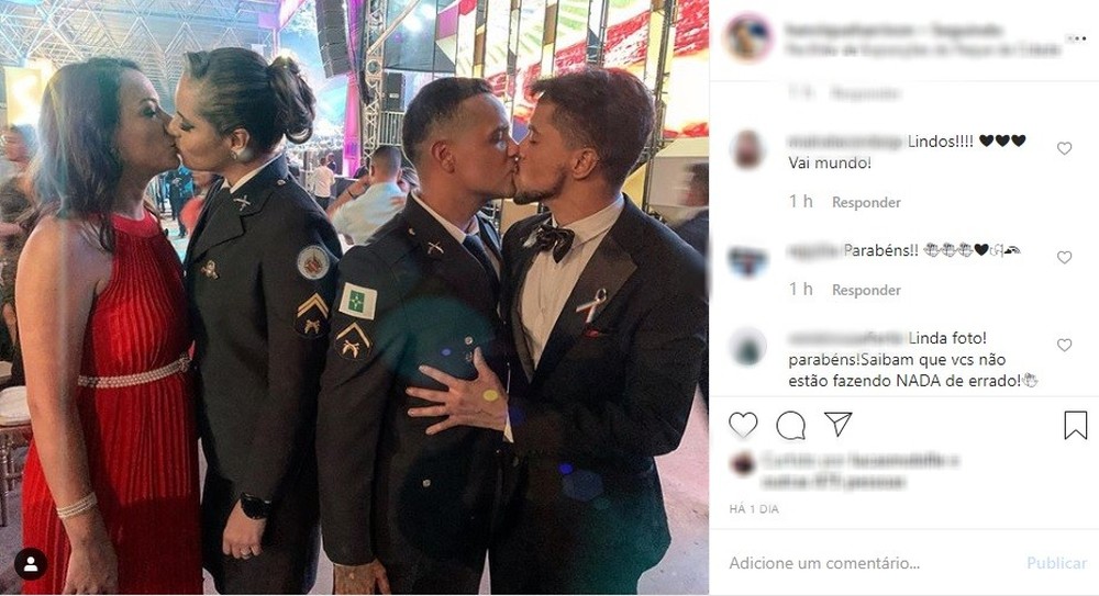 Em um áudio que circula nas redes sociais, um homem identificado como coronel da reserva da PMDF critica os beijos. Ele afirma que as demonstrações de afeto foram uma “avacalhação” da corporação e que “aquele postura poderia ter sido evitada. É lamentável”.