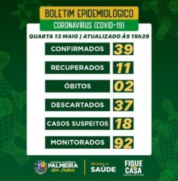 A Secretaria Municipal de Saúde (SMS) mantém atualizadas as últimas notícias sobre o coronavírus e informa que o município tem 39 pessoas infectadas e outras 18 suspeitas de terem contraído a doença.