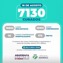 Arapiraca registra 10.312 casos de covid-19; 173 óbitos e 7.130 recuperados