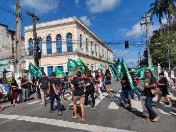 Foto de 2019 mostra trabalhadores ligados ao Sindicato da Educação durante manifestação no centro de Maceió — Foto: Ascom/Sinteal