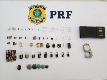 Após a verificação pessoal e veicular, os policiais decidiram realizar uma revista nas bagagens dos abordados, onde foram encontrados 139 minerais que podem ser preciosos.