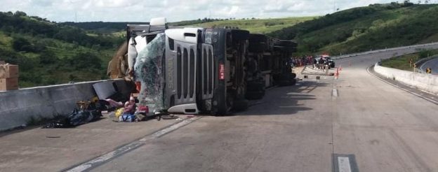Mulher morre após carreta com carga de margarina tombar em Junqueiro, AL