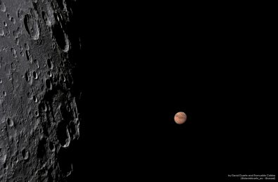 Por isso, os estudiosos prepararam seus equipamentos com antecedência para tentar registrar esse momento único. E como resultado, conseguiram fazer uma foto fantástica do momento em que Marte surgia por trás da Lua, no momento final da ocultação.