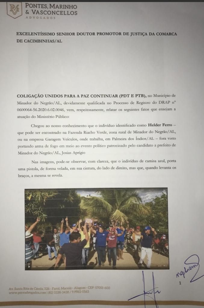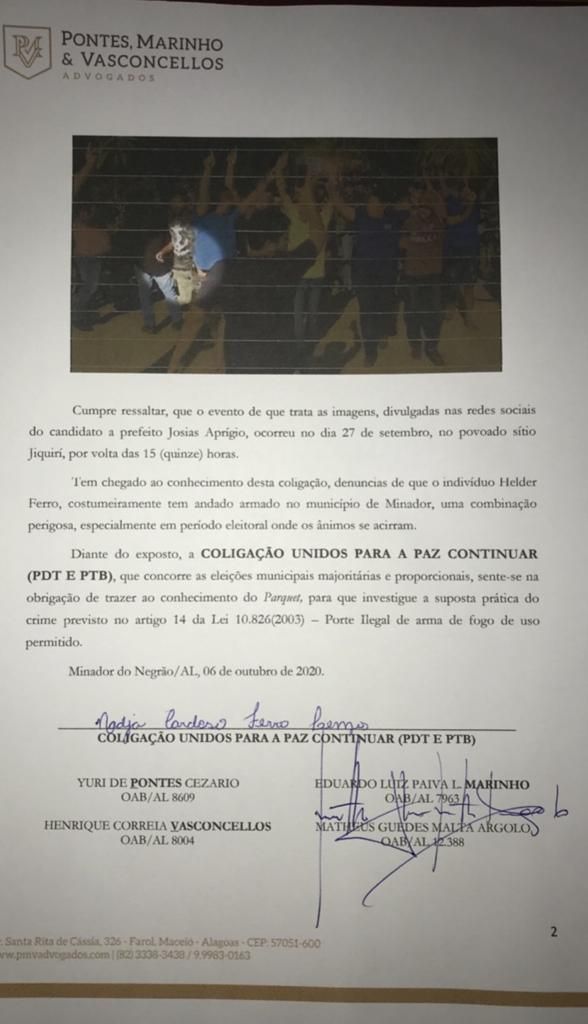 Josias está sendo alvo de representação junto ao Ministério Público (MP). A coligação “Unidos para a paz continuar”,  teria formalizada a denúncia através do seu adversário Emílio Barros (PDT). O candidato defende a tese de que houve crime eleitoral de intimidação de eleitores, porque havia um “cabo eleitoral” armado na caminhada progressista.