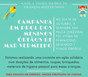 Campanha arrecada doações para ajudar órfãos de mãe assassinada pelo ex-companheiro em Mar Vermelho