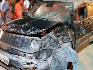 Em determinado momento, os bandidos atiraram nos pneus do carro onde as vítimas estavam, o condutor perdeu o controle e bateu o veículo no muro de uma residência.
