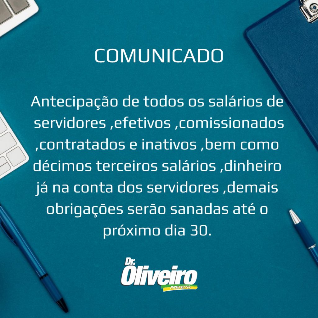 O prefeito afirmou que a antecipação é uma forma de responsabilidade com os funcionários. Dr. Oliveiro, que está no fim do mandato, disse que a medida só foi possível devido ao esforço de toda Administração que soube fazer uma projeção econômica, permitindo a antecipação dos pagamentos.