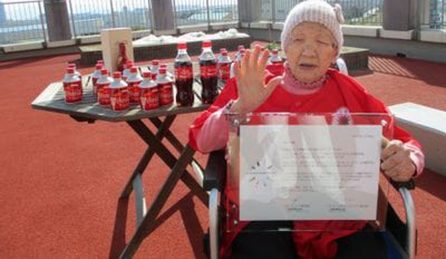 Tanaka, que vive em um asilo em Fukuoka, completou 118 anos em 5 de janeiro, adora refrigerantes e ganhou de presente de aniversário, da sua família, um novo par de tênis para a cerimônia, segundo a rede de TV americana CNN.