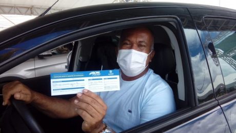 Idoso vacinado contra a Covid-19 no sistema drive-thru em Maceió — Foto: Ascom/SMS