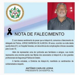 Em nota, o presidente da Associação dos Delegados de Polícia de Alagoas (Adepol-AL), Antônio Carlos Lessa, lamentou a morte de pai e filho.