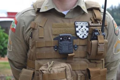 Policiais em Santa Catarina utilizam câmeras acopladas aos uniformes. Policiais em Santa Catarina utilizam câmeras acopladas aos uniformes.