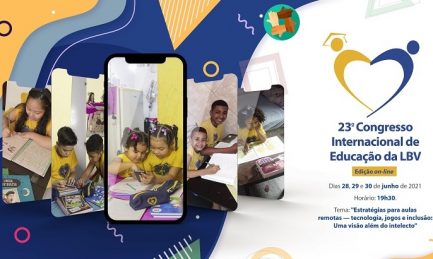 De 28 a 30 de junho, professores e educadores vão apresentar estratégias educacionais e práticas pedagógicas como contribuição à educação brasileira e internacional durante a edição on-line do 23º Congresso Internacional de Educação da LBV, sob o tema “Estratégias para aulas remotas — tecnologia, jogos e inclusão: Uma visão além do intelecto”.