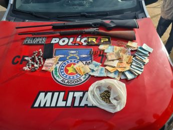 Dois homens, de 20 e de 45 anos, foram presos em flagrantes em uma operação policial nesta quarta-feira (16) em Major Izidoro, no interior de Alagoas. A ação também resultou na apreensão de armas, maconha e R$ 29 mil em espécie.