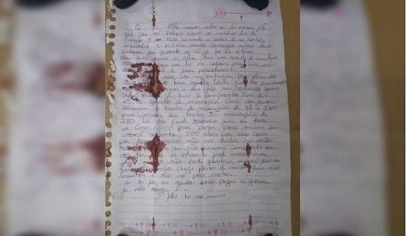Os policiais integrantes da força-tarefa responsável para captura do criminoso Lázaro Barbosa, de 32 anos, encontrou em um dos bolsos do casaco do assassino, uma carta ensanguentada onde o maníaco descreveu cenas de um crime.