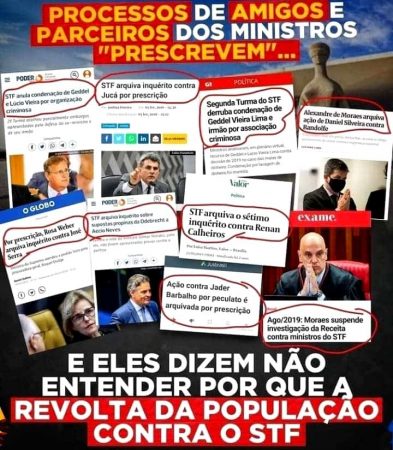 Prende um deputado e um jornalista, militantes de direita, por terem dito e escrito coisas que desagradaram aos ministros. Conduz há quase dois anos um inquérito inteiramente ilegal contra adversários políticos. Tem um candidato à Presidência da República nas eleições de 2022 — o ex-presidente Lula.