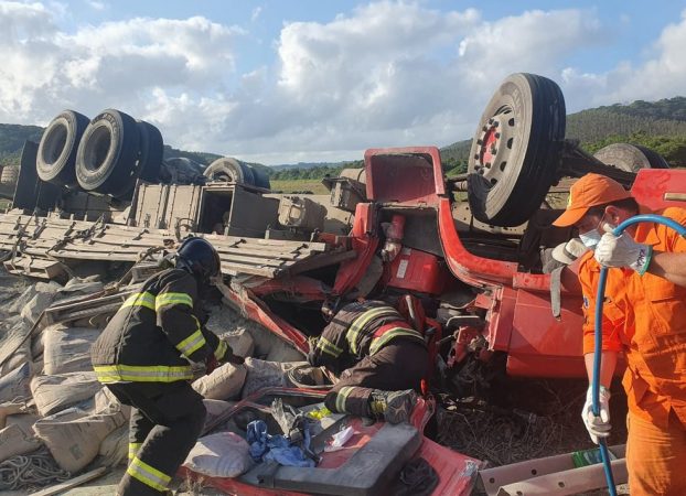 Tombamento de caminhão deixa feridos em rodovia de Maceió; motorista ficou preso às ferragens