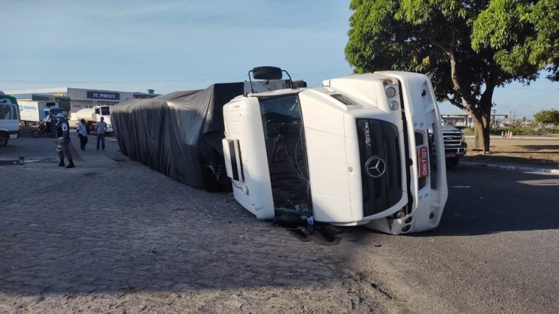 Motorista fica ferido durante tombamento de caminhão em Arapiraca; trânsito está lento