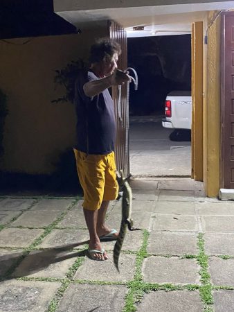 Logo após a captura, o réptil foi levado de volta para o seu habitat natural.