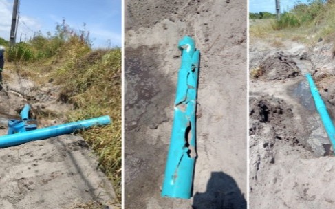 Nas imagens, o morador mostra a rede danificada com grande volume de água limpa jorrando e fala que a situação teria sido provocada por uma pessoa, que teria utilizado um equipamento não identificado para conseguir quebrar a tubulação e interromper o abastecimento no povoado. No local, inclusive, não há obras de outras empresas realizadas recentemente ou em andamento, que poderiam ter ocasionado o incidente.