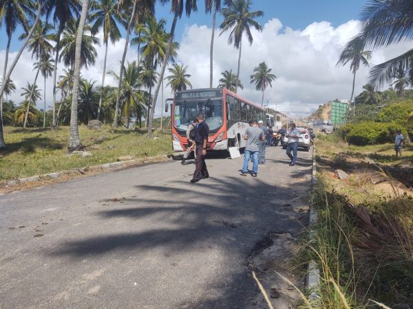 Um ônibus desgovernado desceu uma ladeira na Eco Via Norte em Guaxuma, Maceió, cruzou a rodovia AL-101 e só parou perto da praia. O acidente aconteceu nesta segunda-feira (8) e deixou cinco passageiros feridos.