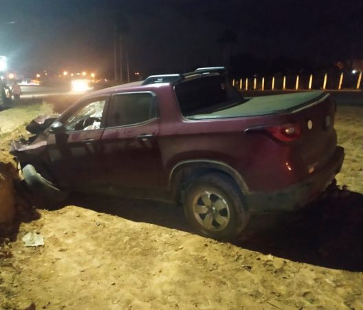 Policiais do Batalhão de Polícia Rodoviário (BPRv) informaram que o motorista de uma Toro bateu frontalmente em uma motocicleta e em um veículo não identificado ao fazer a ultrapassagem.