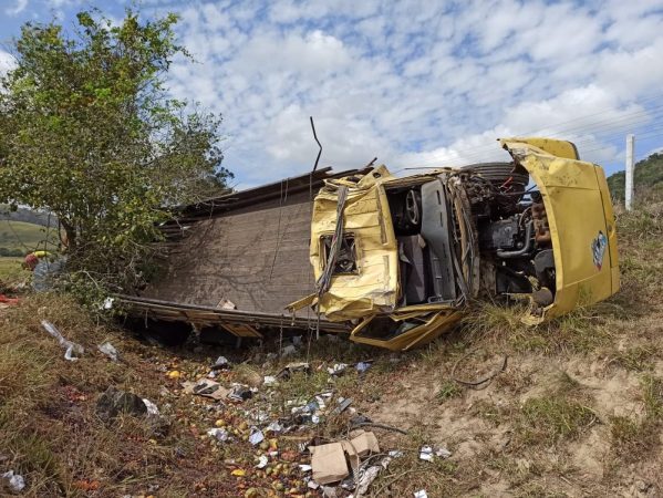 Caminhão tomba e tem carga de frutas saqueada em Maribondo, AL