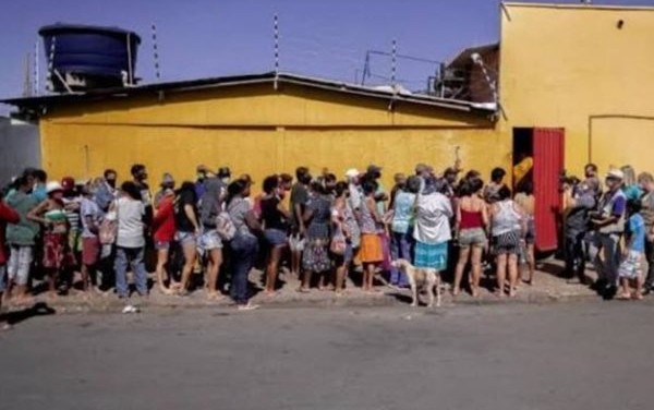 Centenas de pessoas madrugaram na fila do açougue no bairro CPA 2 que doou ossinhos nesta quinta-feira (23/12), em Cuiabá (MT). A procura pelo alimento foi intensificada nas proximidades da véspera do Natal e a fila se estendeu por volta de cinco quarteirões.