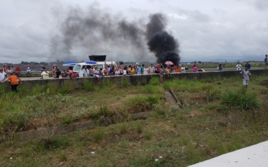 Segundo informações da Polícia Rodoviária Federal (PRF), os moradores atearam fogo em pneus e galhos de árvore, impedindo a passagem de condutores.
