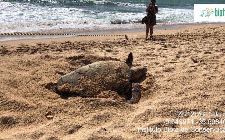 Tartaruga desova na Praia de Jatiúca e é monitorada por Instituto Biota
