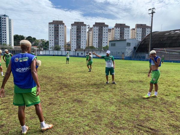 No treino desta manhã, os atletas fizeram atividades de posse de bola. Na sequência, o técnico Sóstenes Félix reuniu a equipe e fez um treino tático com o objetivo de marcar pontos em espaços reduzidos no gramado.