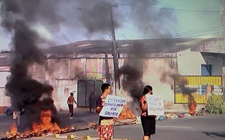 Moradores do Loteamento Santa Casa, no bairro do Jacintinho, em Maceió, realizam um protesto, na manhã desta segunda-feira (7), na Avenida Leste-Oeste, para cobrar do Município uma obra de contenção de barreira no local.