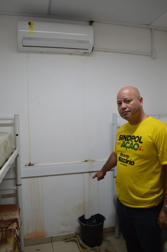 Nas duas celas, o presidente do Sindpol encontrou seis presos, sendo cinco homens em uma e uma mulher em outra. A cela foi projetada para até três pessoas. Com cinco, o local se torna desumano e insalubre.