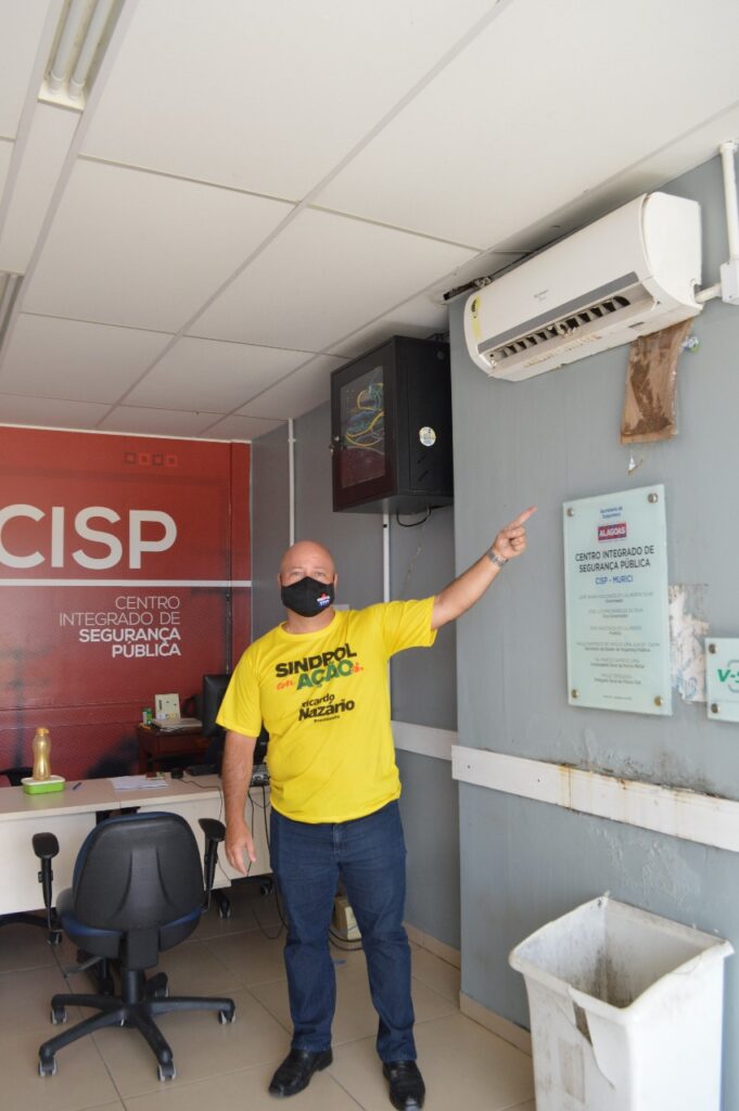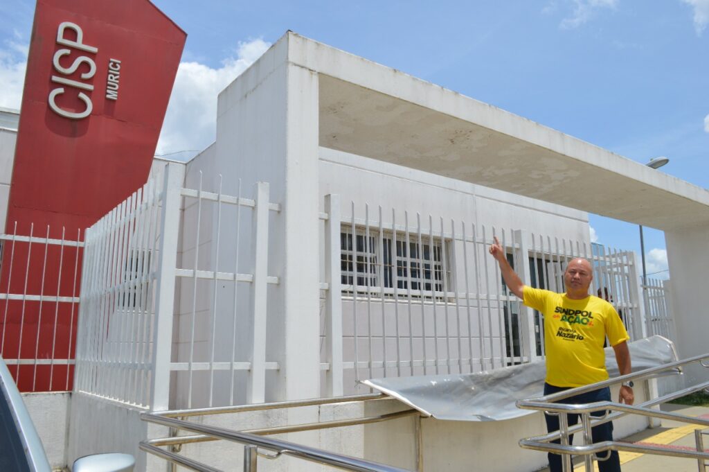 Em Murici, o CISP também está esquecido pelo poder público. Ao entrar na recepção, os dirigentes do Sindpol se depararam com defeito do ar condicionado, com a água do aparelho caindo em um balde. Há infiltrações nas paredes e no alojamento feminino.