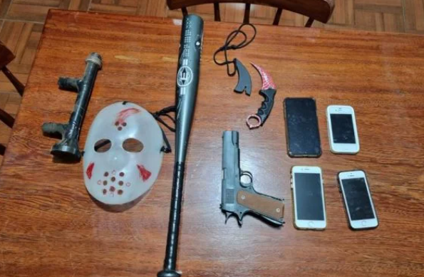 Na casa do suspeito, a equipe policial encontrou materiais relacionados à pornografia infantil – fotografias e vídeos com cenas de sexo explícito envolvendo criança e adolescente – armazenados no celular do estudante. Também apreendeu taco de beisebol, arma de fogo, faca, quatro telefones e uma máscara do personagem Jason, da série Sexta-Feira 13.