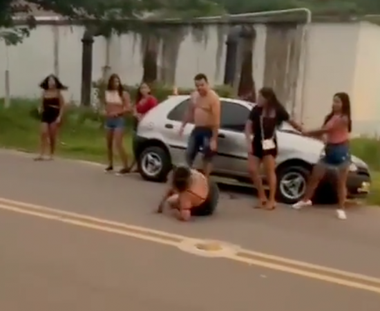 As imagens mostram o homem sem camisa proferindo palavras ofensivas e agredindo fisicamente a mulher de 27 anos, que é atingida por chutes. “Me bote na Maria da Penha, me bote na Maria da Penha!”, ele diz.